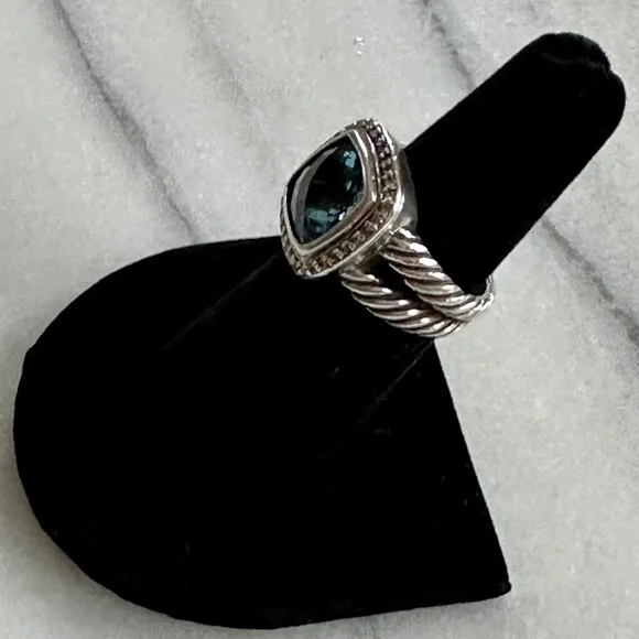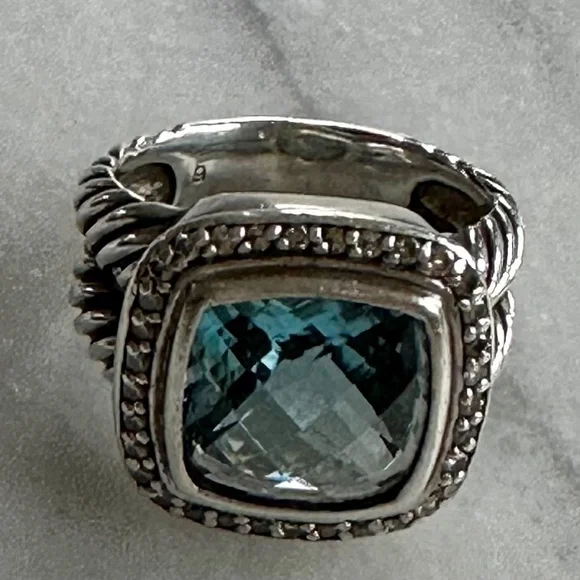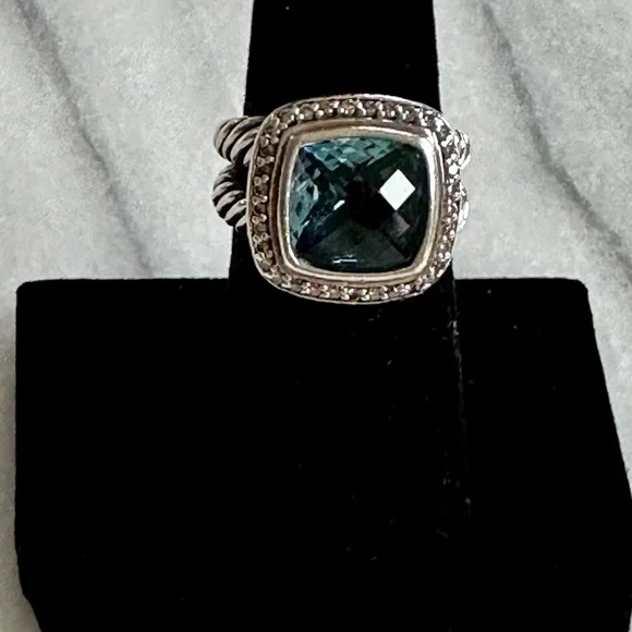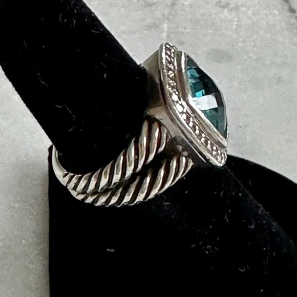 David Yurman Petite Albion Ring in Sterling Silver with Blue Topaz and Pave DiamondsSize 5.5Stone 7mm