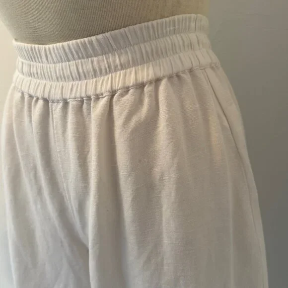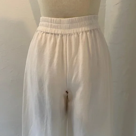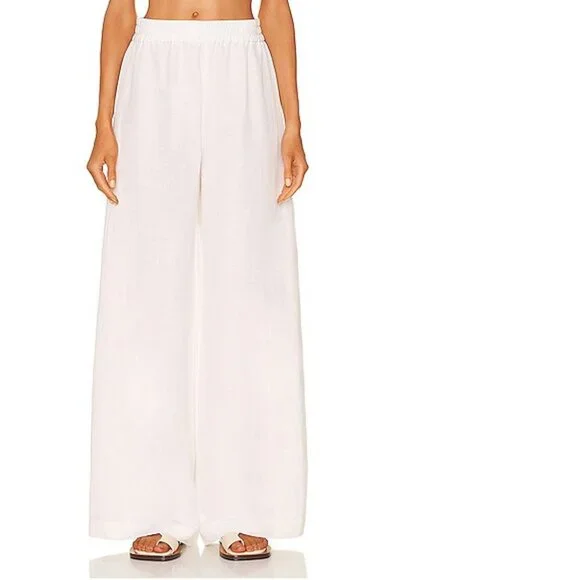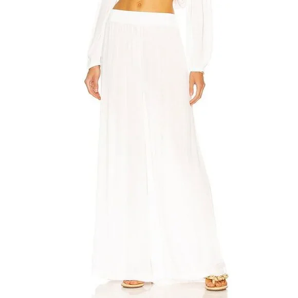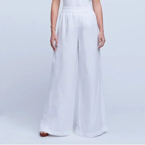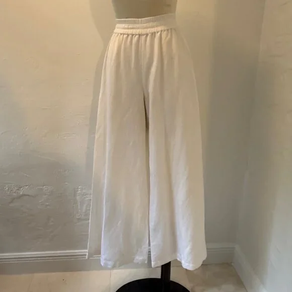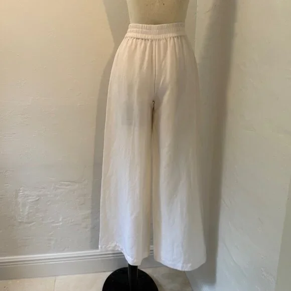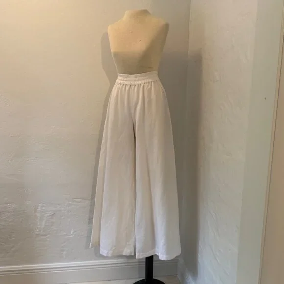 A sublime ultra-wide-leg pant in a pure-white linen-like fabric. Softly gathered stretch waistband fits securely at the high waist before cascading into full palazzo-style legs that encourage exquisite flow and drape.Elevated pant with an extra wide leg design. Featuring a softly gathered elasticated waist and full palazzo-style legs. Elasticated waist. Wide leg Full length. 100% Rayon. Imported. Dry Clean. Never Worn
