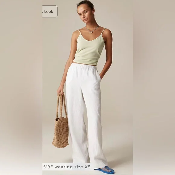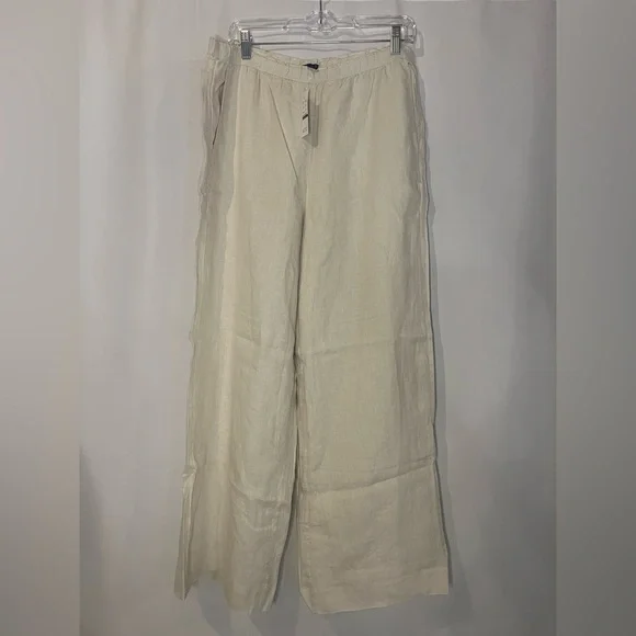 New with tagsTag and label marked through to prevent in store returnsColor for sale is natural l, other photos to show fit on onlyFits SLIGHTLY BIG based on 73 customer reviewsFrom our stylists: This style runs slightly big. If you´re between sizes, or prefer a more tailored fit, please size down.High rise.Relaxed through the hip, thigh and leg.Front rise: 11 5/8"; 30" inseam; 24" leg opening (based on a size S).Looks like a dress pant, feels like sweatpants. . .-This comfy style comes with an easy elastic waistband and a relaxed, full-length leg that skims the floor (so it looks even better with heels). Plus, it´s crafted from breezy 100 percent linen that´s naturally textured, so it looks great right out of a suitcase—which makes it our new favorite travel pant.100% linen.Elastic waist.Pockets.White and natural colorways are lined.Machine wash.ImportedItem CL872.