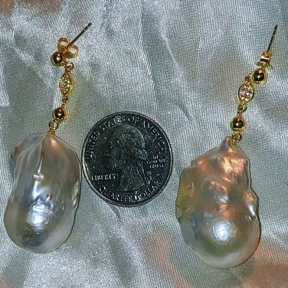 Genuine Large BAROQUE PEARL Earrings in Yellow Gold Vermeil (gold over sterling silver), accented w/ a splash of White ZIRCON. Butterfly backs snap these into place. ✨✨REDUCED...