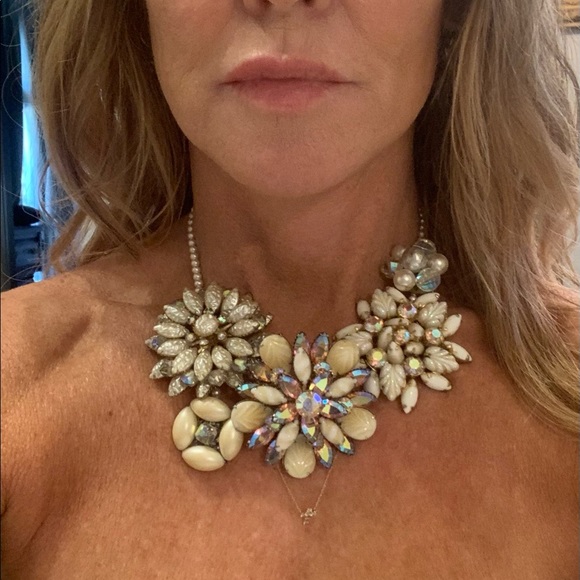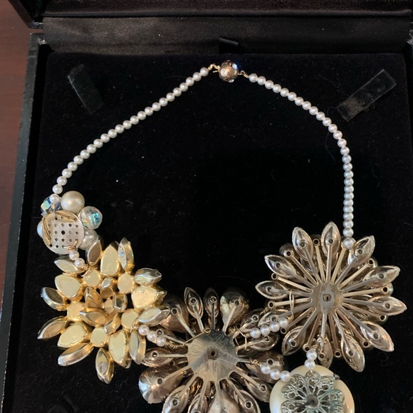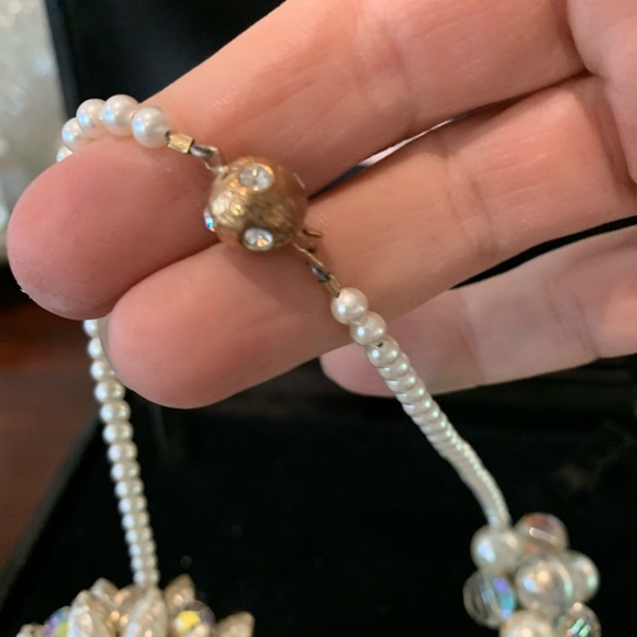 Simply exquisite handmade necklace from 3 vintage brooches and 2 vintage earrings. Strung on small pearl beads with beautiful gold and rhinestone clasp. No stones missing. See...