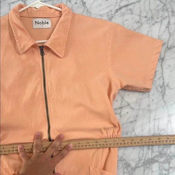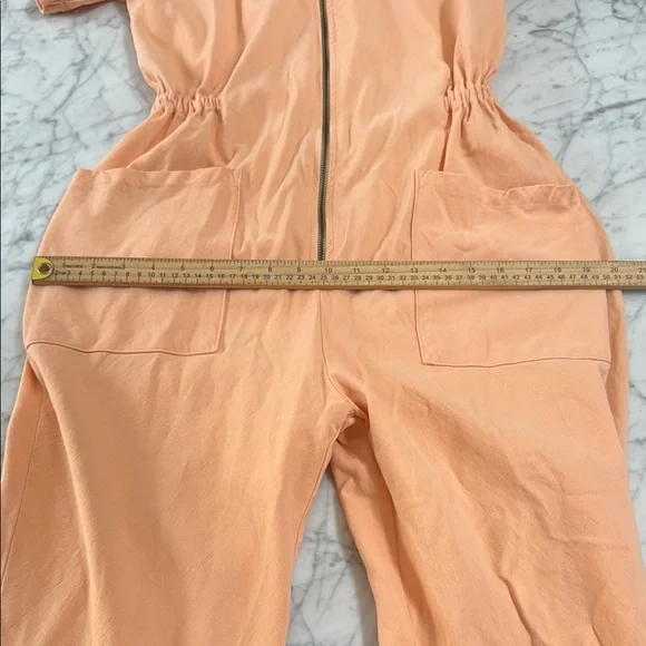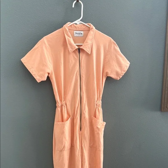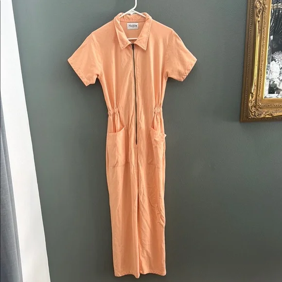 Noble The Utility Jumpsuit in Papaya Sz M. Excellent condition, no flaws. Our signature Utility Suit features a cropped straight leg and a cinched elastic waist for a flattering, comfortable fit. Made from durable yet buttery-soft 8oz Pima cotton canvas, GOTS-certified organic and fully traceable from plant to product. Garment-dyed with eco-friendly processes, each piece is pre-washed and pre-shrunk for an ultra-soft feel and impeccable fit.Retails for $198