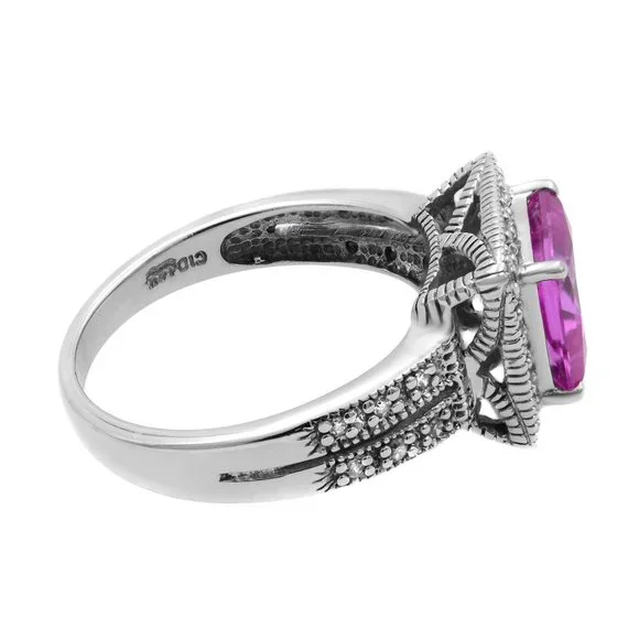 Vintage Clyde Duneier CID Pink Gemstone & Diamond Ladies Ring 10K White Gold