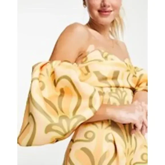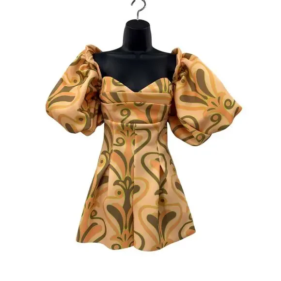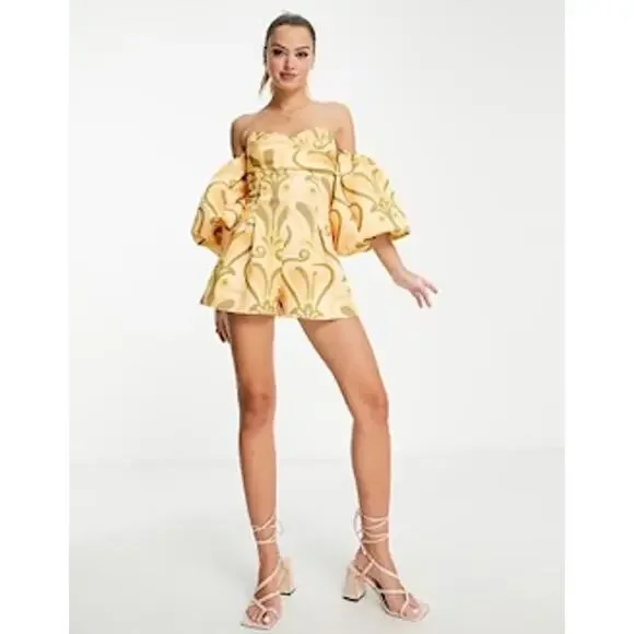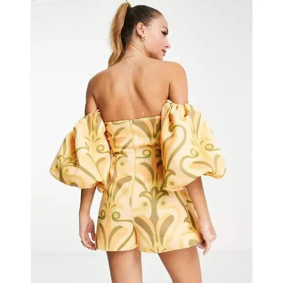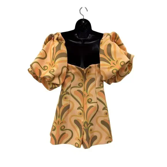 yellow orange swirl puff sleeve romper