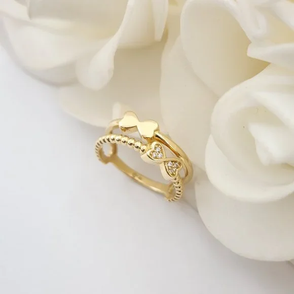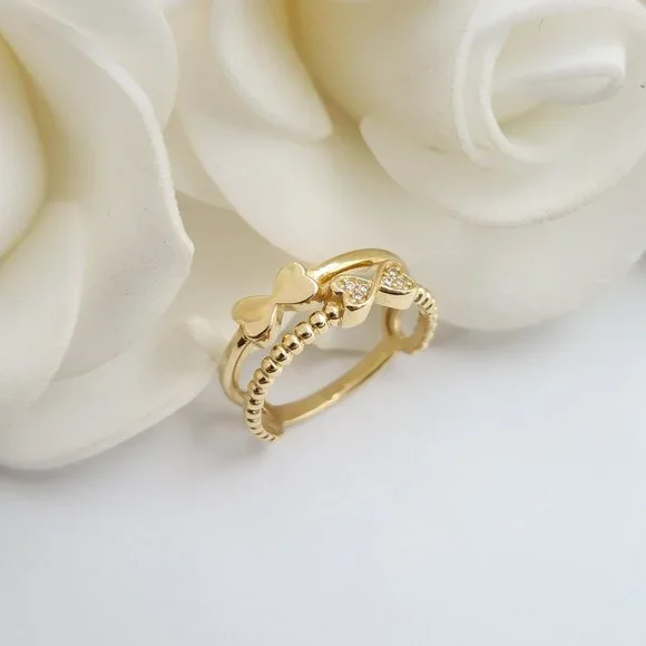 Solid 14k Gold Double Band Bow Ring - Real 14k Gold