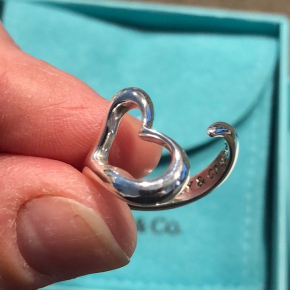 Tiffany & Co. Elsa Peretti Open Heart Ring- size: ring size 6, heart size “medium”- designer: Elsa Peretti- style: Open Heart Ring- metal: sterling silver .925- condition: like new- guaranteed authentic- currently for sale for $285 at Tiffany & Co.- comes with box, dustbag and care card