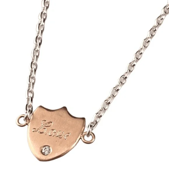 18” 18k Rose Gold ´Love´ Shield Necklace with Diamond on Sterling Chain