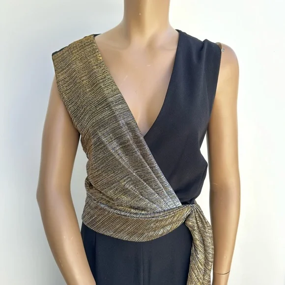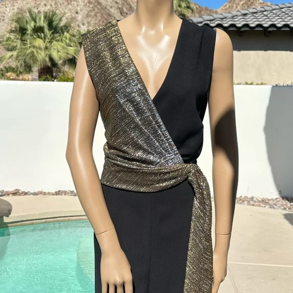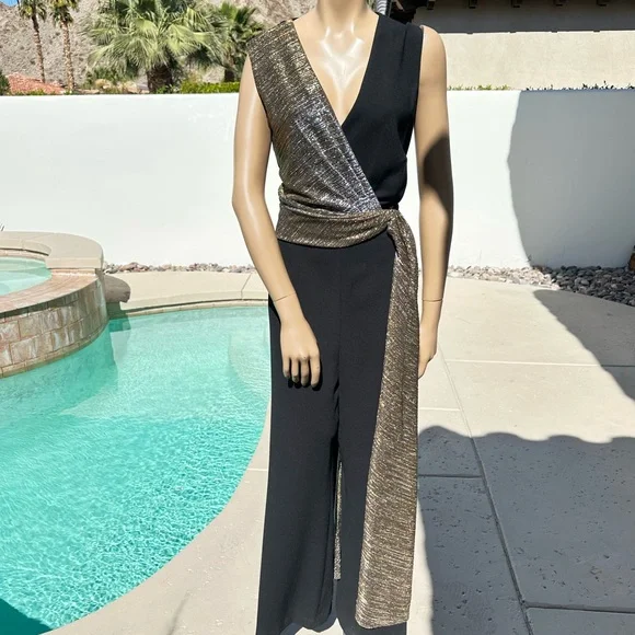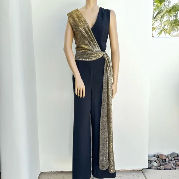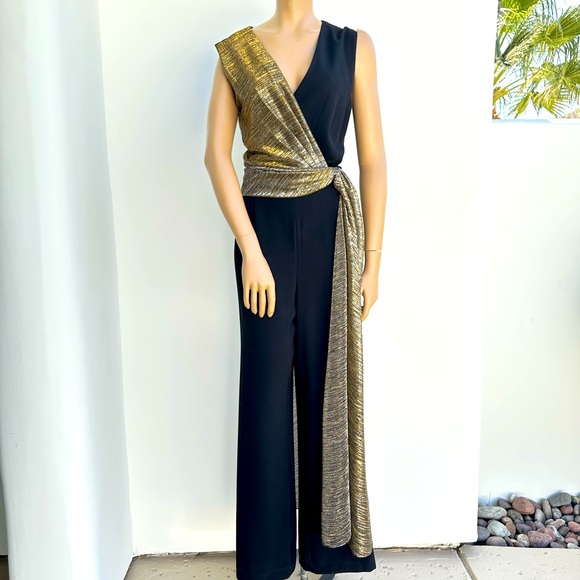 Tahari Elegant Black and Gold Jumpsuit