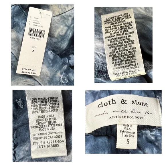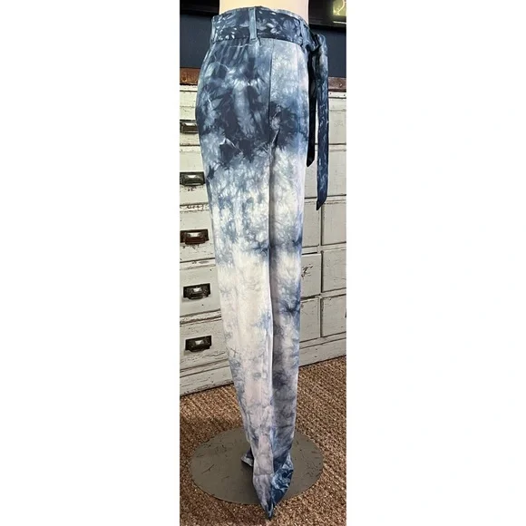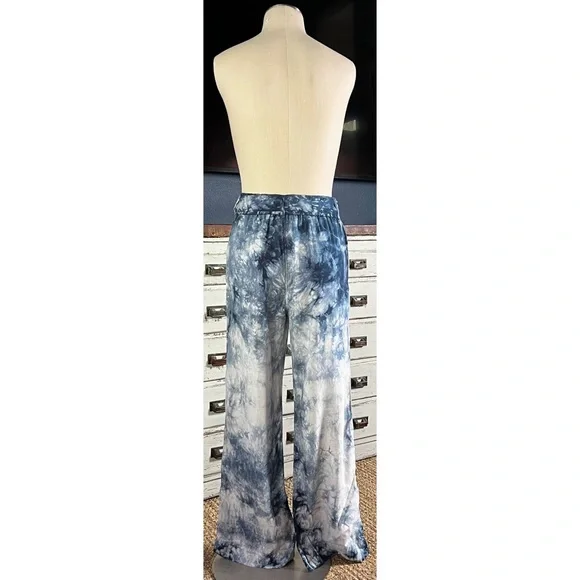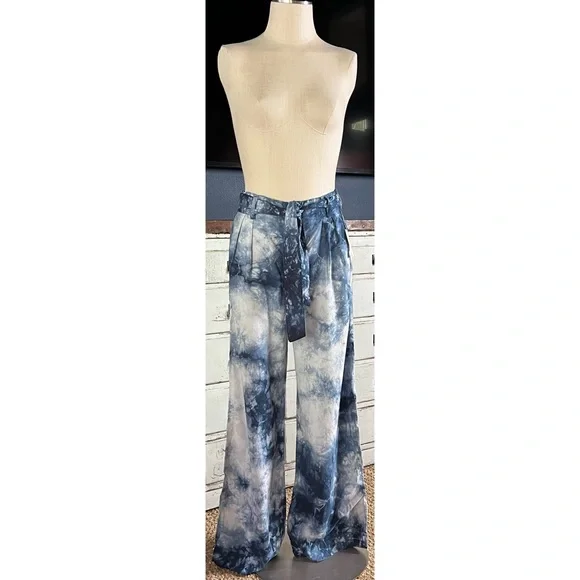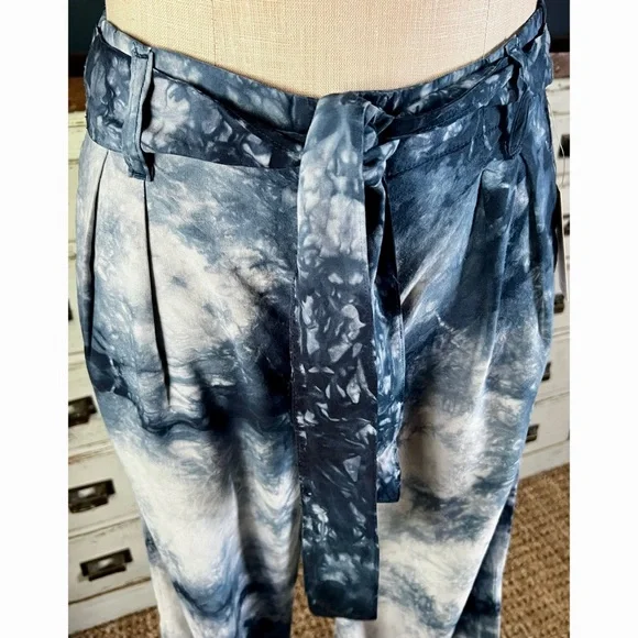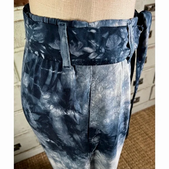 New With TagsSize SmallThese fun pants by Cloth & Stone for Anthropologie are beautifully tie dyed.The pretty pants have a removable tie waist belt.The blue & white pants are pleated in the front.The fabric is 100% Tencel.Measurements laying flat:Length 43.5”Inseam 31.5”Waist 14”Hips 20 3/4”Rise 12 1/4”