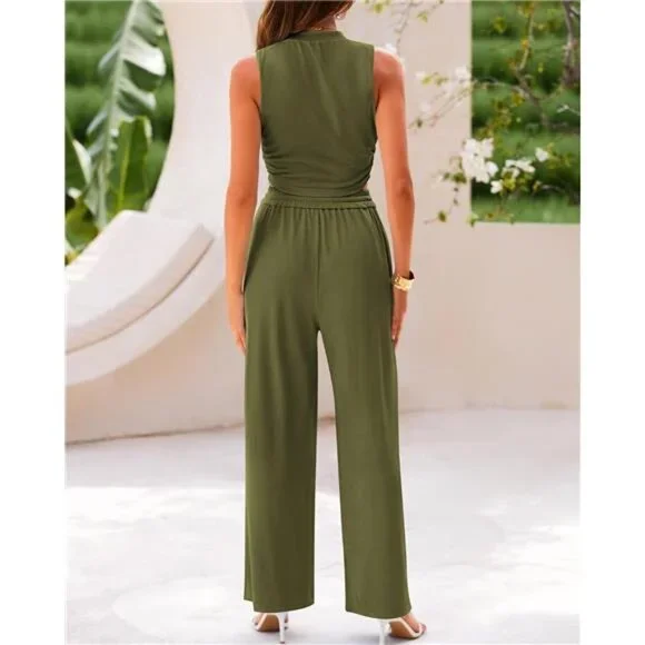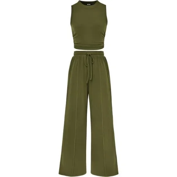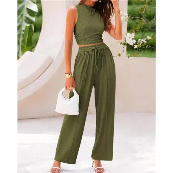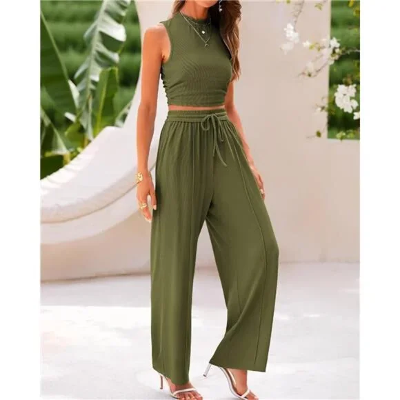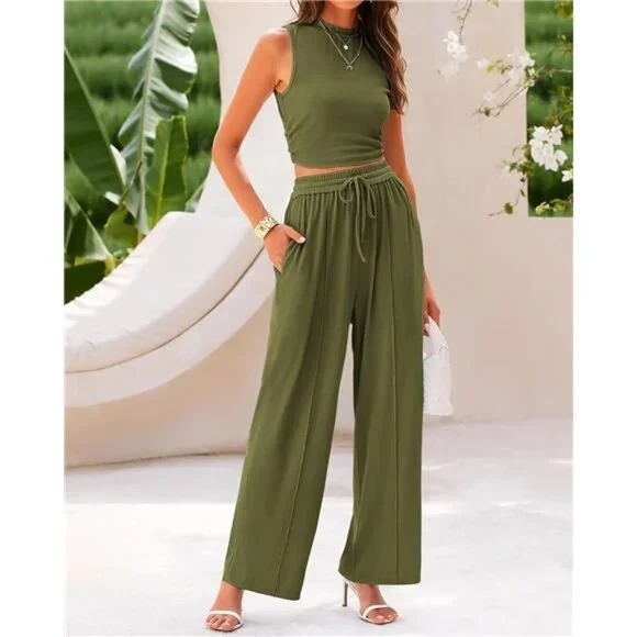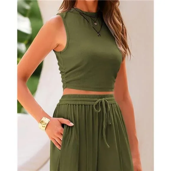 BTFBM Women Summer 2 Piece Outfits 2025 Beach Crew Neck Sleeveless Cropped Top