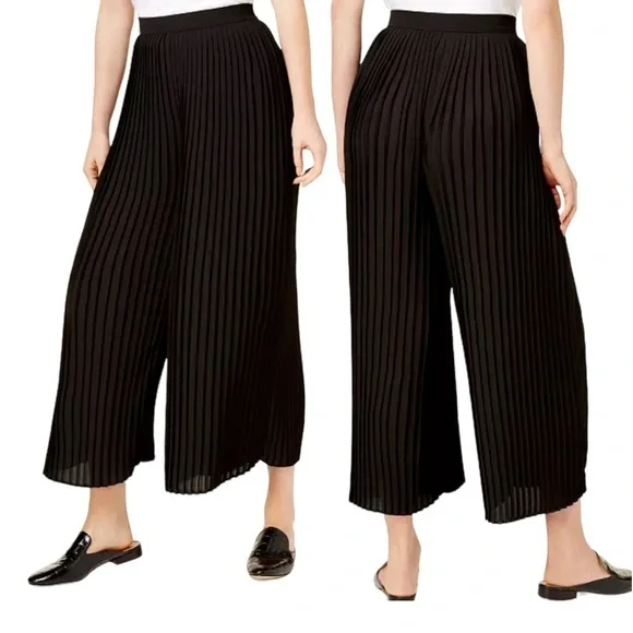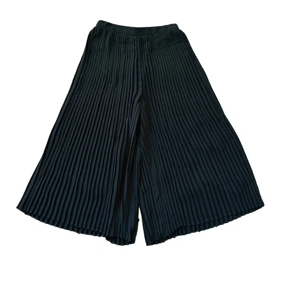 Gently lovedAn effortless, voluminous wide-leg silhouette pairs with lovely pleats on these sophisticated cropped pants from Eileen Fisher.High rise; relaxed fit through hips and thighs; cropped wide leg100% recycled polyester Approximately:13.5” across the waist 14.5” rise19” inseam32” long Light signs of wear.See photos for additional details.