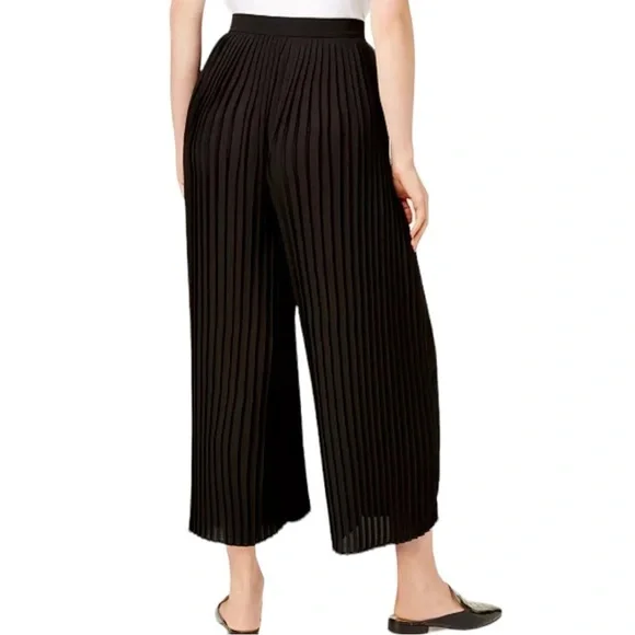 Eileen Fisher Pleated Wide-Leg Ankle Pants in Black PP 2-4 Petite