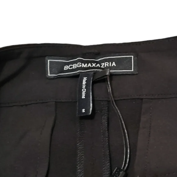 BCBGMaxAzriaWomen´s Ponte Stretch Straight Leg Trousers High Rise Dress PantColor: BlackSize: Small S / Women´s 4New with tags!Retail: $198Beautifully draped center pressed dress pant by BCBG Max AzriaStraight leg trouserHigh rise waistFront hidden zip and hook closureSide angled pocketsBack slit pocketsMaterial: 89% polyester, 11% spandexMachine washMeasures: 28" waist, 12" rise, 33.5" inseam, 22" cuff