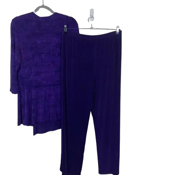 Coldwater Creek Pant Top Set Slinky size XL USA Purple Stretch Travel Packable