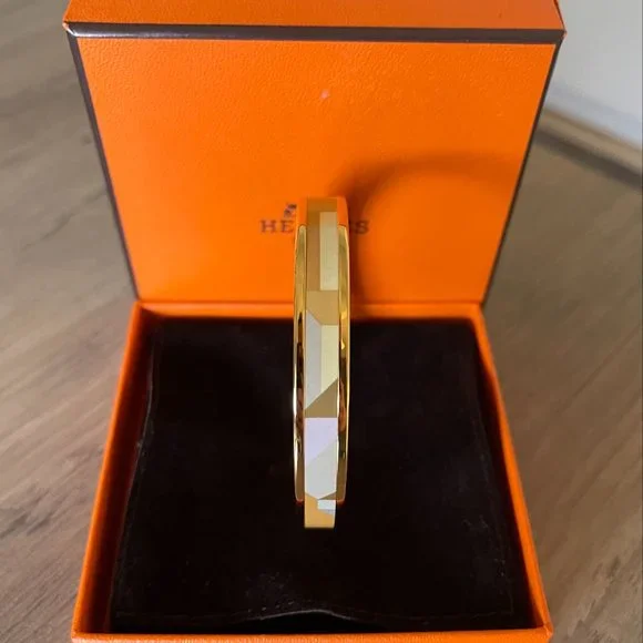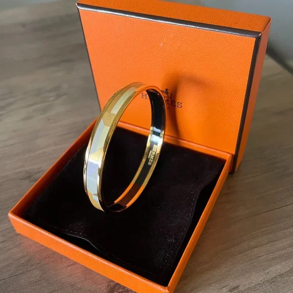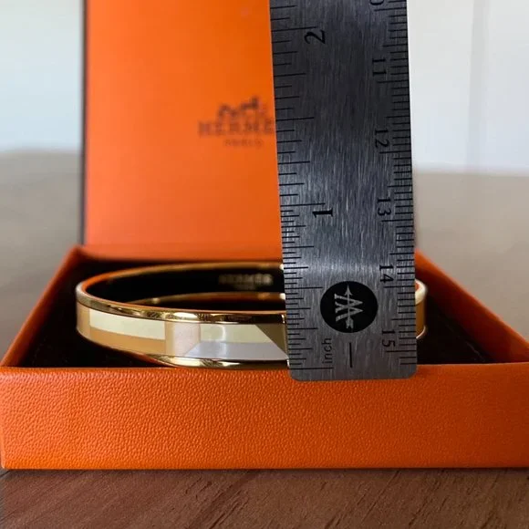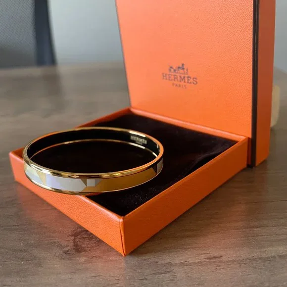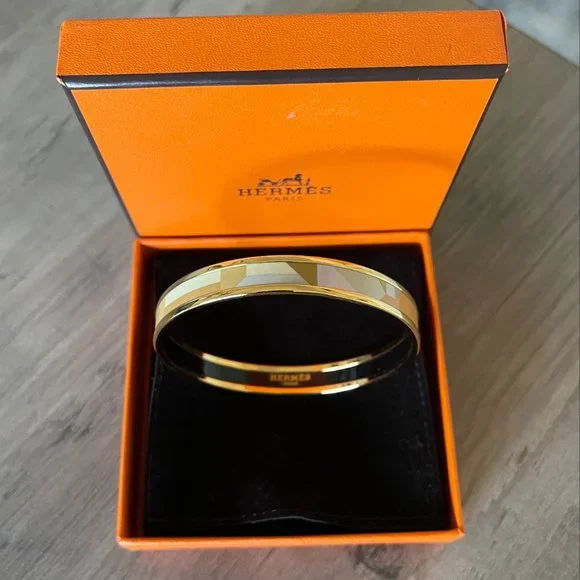 Brand new, never been worn Hermes pastel-printed enamel bracelet/bangle. Original Hermes branded box and soft cover pouch included.