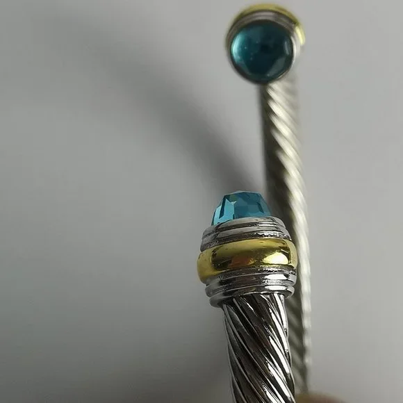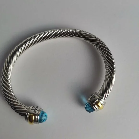 Cable Classics Bracelet in Sterling Silver with Blue Topaz and 14K Yellow Gold M