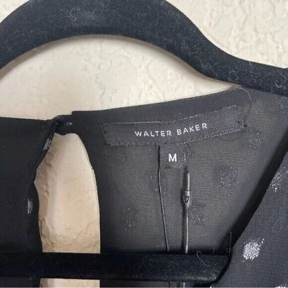 Walter Baker Emory Jumpsuit Black and Silver Women’s Size Medium in new with tags never worn. Color/pattern: black/silver Approximately 59in from shoulder to hem Measurement was taken from a size medium and may vary slightly by size Design details: clip design Center back zipper with button-and-loop closure 100% polyester Machine wash Imported