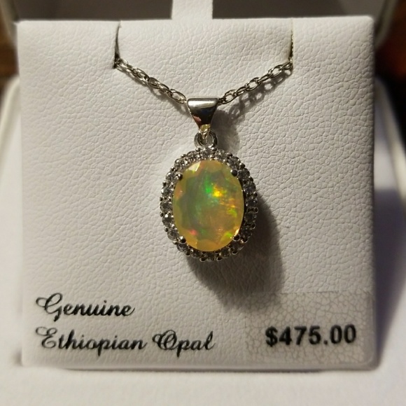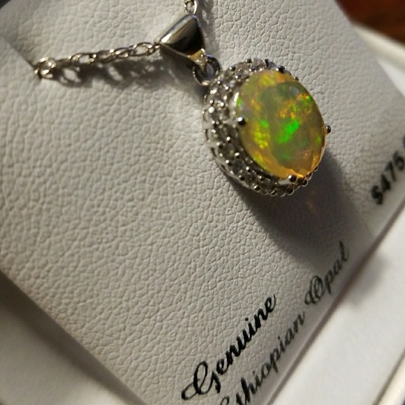 Sterling Silver Oval Genuine Ethiopian Opal Pendant CZ Accents with Sterling Silver Chain Pendant Marked 925 HN in circle Chain Marked 925 on Spring ring & 925 HN on Spacer