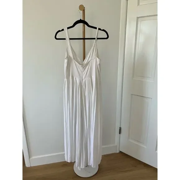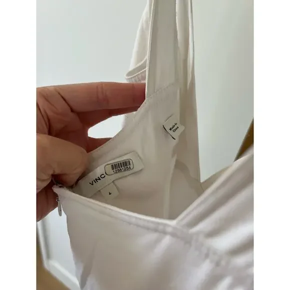 Vince White Pleated Jumpsuit 6Condition: Pre-owned condition, no stain or holeSize: 6MSRP: $395 Good luck finding a more chic summer jumpsuit. This cropped and pleated VINCE. number has a fitted bodice, deep v-neckline, and pockets.White crepe (100% Polyester). Jumpsuit. Sleeveless. V-neckline. Pockets. Hidden back zipper closure. Fully lined. 51" from shoulder to hemline; 20" Inseam. Imported.