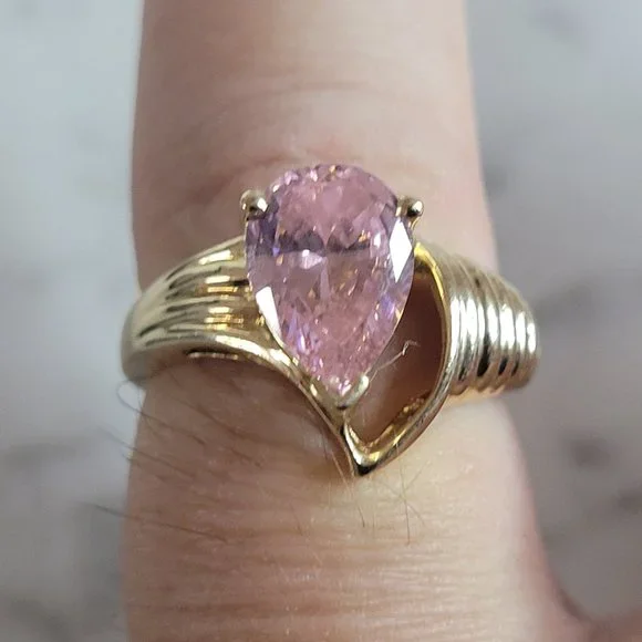 A WOMENS VINTAGE ESTATE 10k YELLOW GOLD ROSE QUARTZ RING.THE RING WEIGHS 3.6g AND IS A SIZE 6.0.NOT SURE IF THE ROSE QUARTZ IS REAL OR MAN MADE.THE WIDTH OF THE RING IS 1/2".ANY QUESTIONS, PLEASE DO NOT HESITATE TO ASK.BE SURE TO CHECK OUT SOME OF OUR OTHER ITEMS FOR SALE.