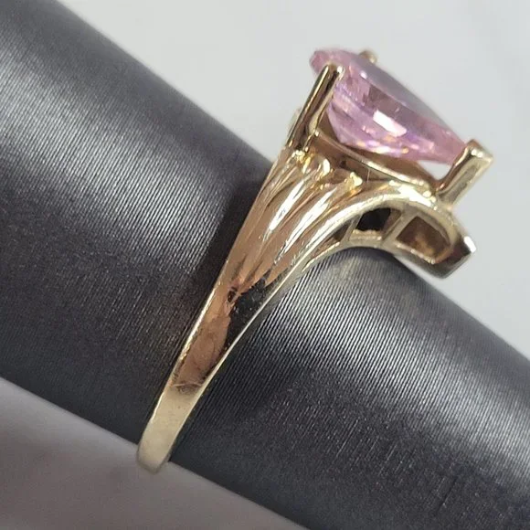 Womens Vintage Estate 10k Yellow Gold Rose Quartz Ring 3.6g E6794