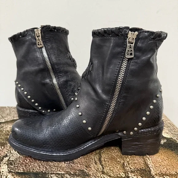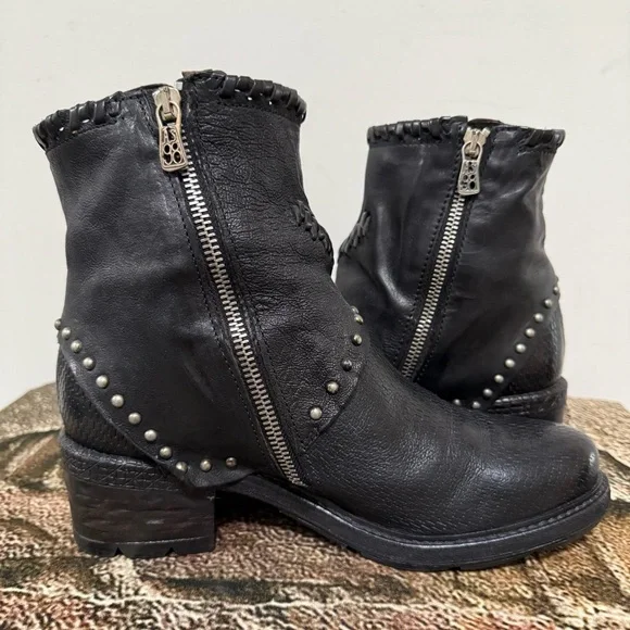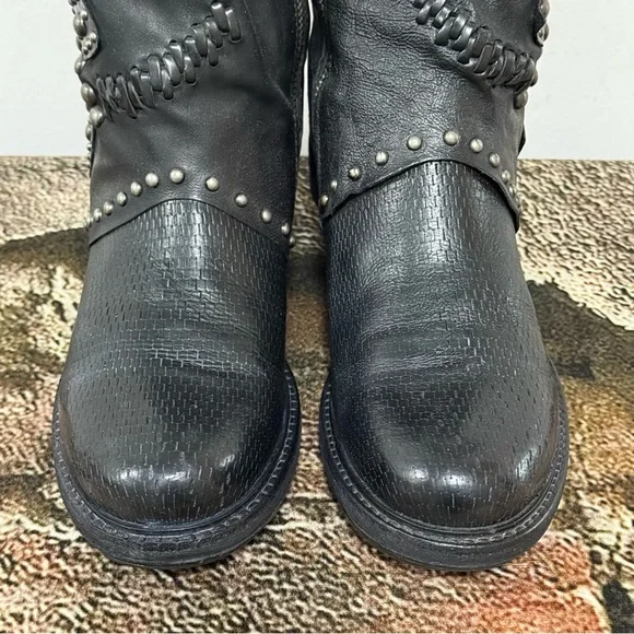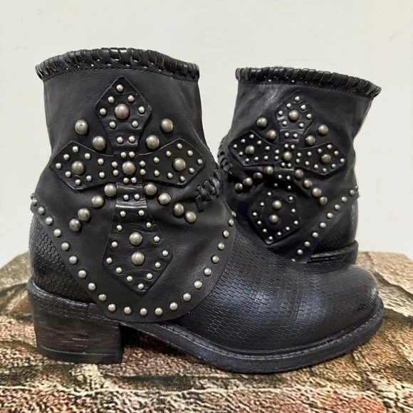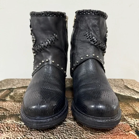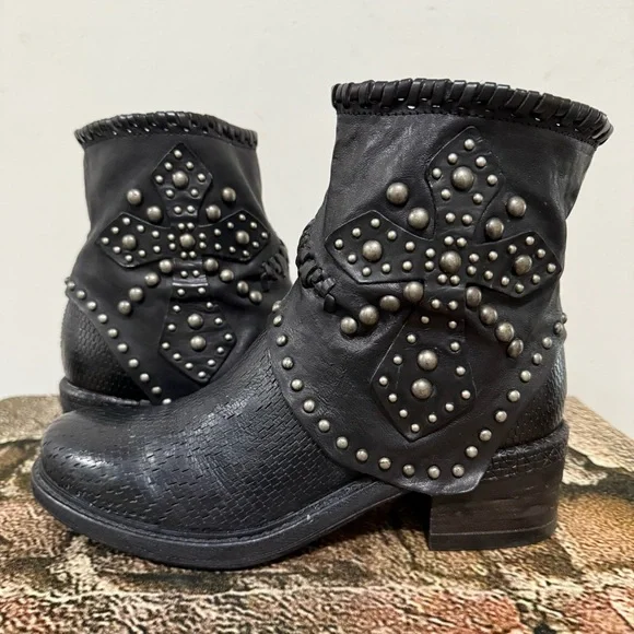 AS98 Black Studded Cross Boots Size 39PreownedPlease review all photos as they are part of the descriptionDo not have the original box but will pack with careThese do have scuffs...