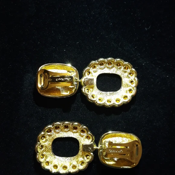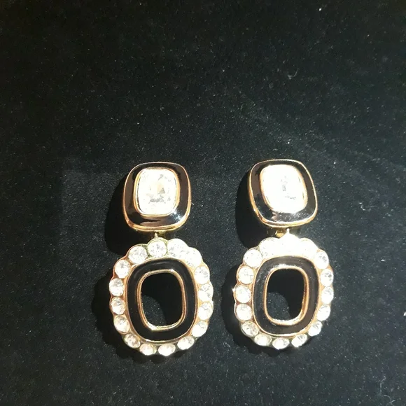 Christian Dior Clip Glamorous Oversized Runway Black Enamel with Crystal´s Earrings. @2"