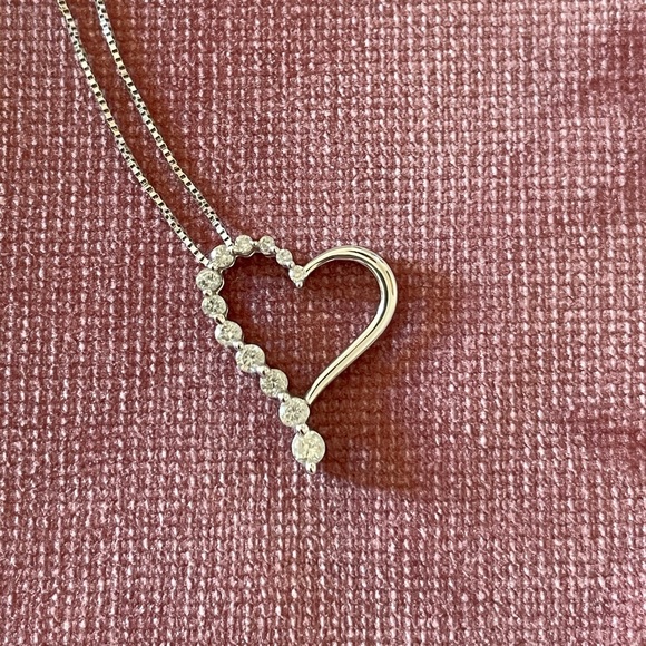 Like new - no scratches!Diamond heart pendant in 10k white gold12 round single cut diamonds22” white gold rope chain