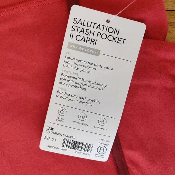 Athleta NEW Salutation Stash Pocket Capri Size 3X Pink Mesh Detailing NWT.