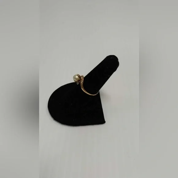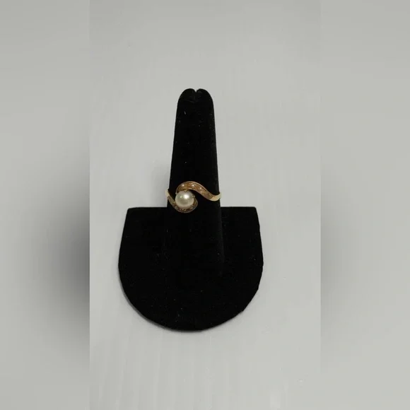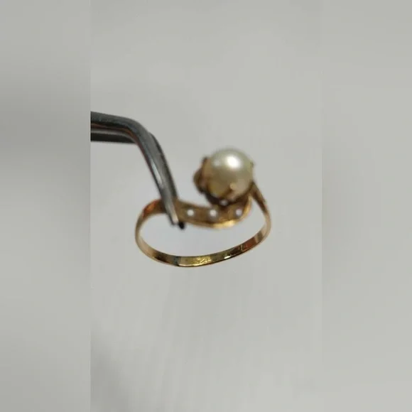14K Solid Yellow Gold Genuine Pearl Ring Size 8.5