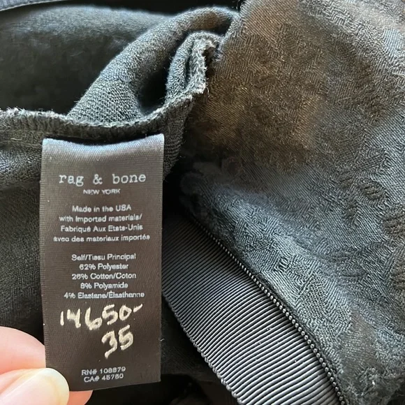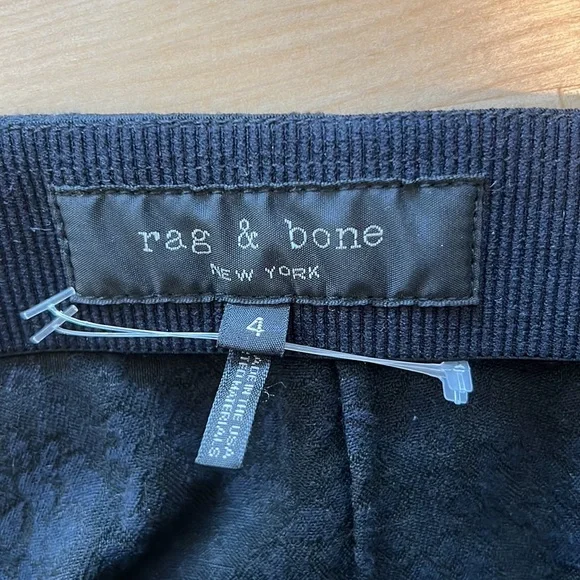 Rag & Bone Mid-Rise Flower Jacquard Ankle Pant, 4. Made in USA. 62% Poly, 28% Cotton, 8% Polyamide, 4% Elastane mid-weight quality Jacquard fabric. Flower print design. Hidden back zip. EUC- no wear to note/like new. Classic, modern business professional/ business casual officewear. Wardrobe staple. Classic & well constructed. Timeless staple piece that never goes out of style.Measurements taken flat: Waist: 13.25"Front Rise: 10"Inseam: 26.5"Leg Opening: 5.75"