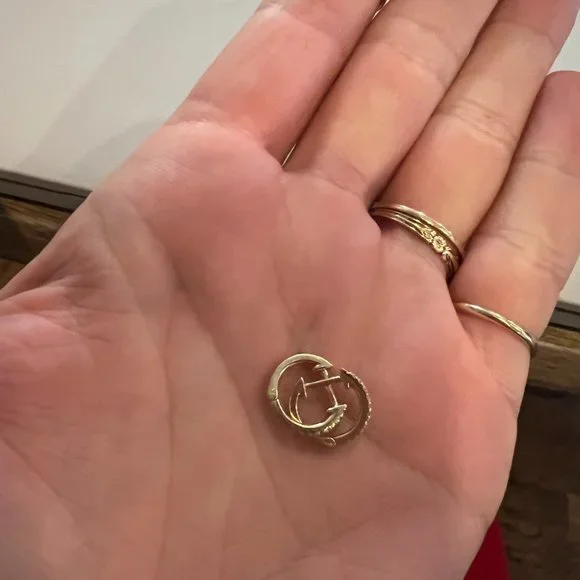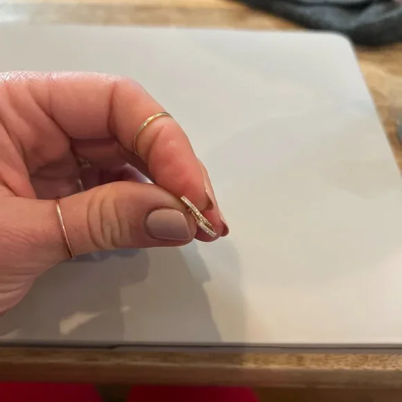 small diamond huggies in14k gold. clasp still works. all diamonds in tact. originally purchased for $425 from Moondance Jewelry. https://moondancejewelry.com/shop/pave-huggies/