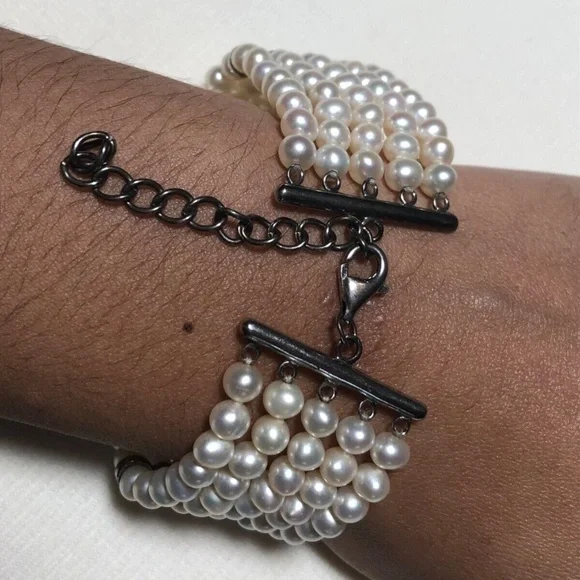 Vintage Lee Michael´s Ladies Pearl and Sterling Silver Bracelet With Length Extender.It´s only had one owner and that´s me!Elegant and classy pearl bracelet is about 6" long with extender that is 1 1/2 to give the owner extra inch or so if needed to wear comfortable. This bracelet has sterling silver spacers also which adds to the beauty ofthe bracelet.