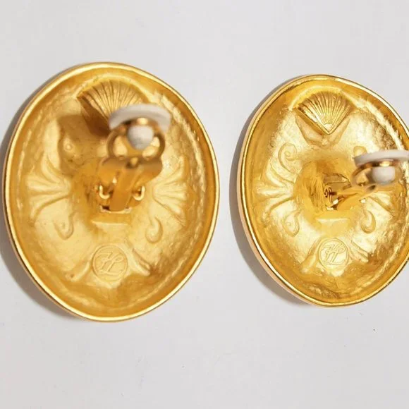 Vintage Karl Lagerfeld Clip Earrings – Green Enamel w/Pearl