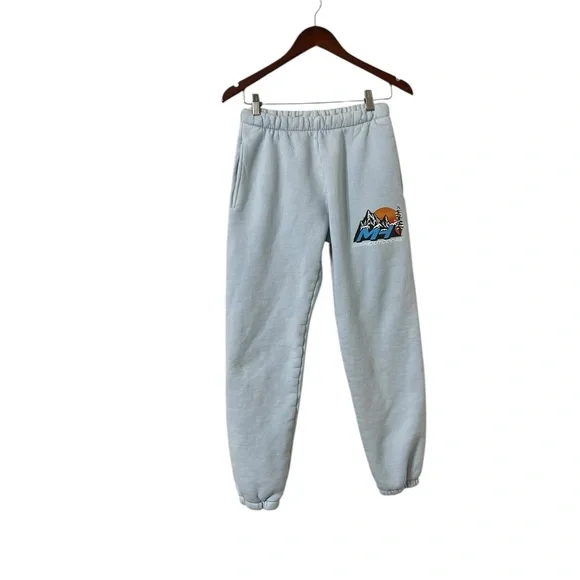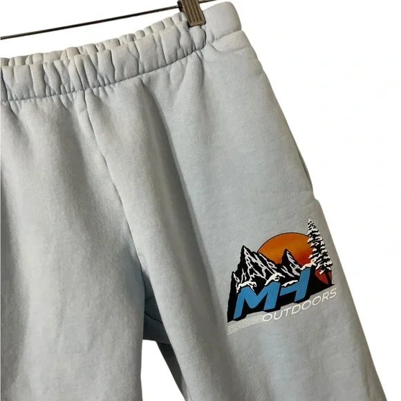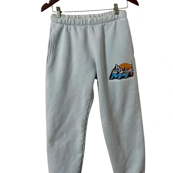 MADHAPPY Graphic mountain joggers100% cottonWith pocketsIn good pre loved condition. Stain towards the bottom left leg, see pics. No other flawsSz Medium Waist across 13”Rise 10”Inseam 28”
