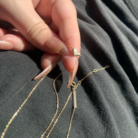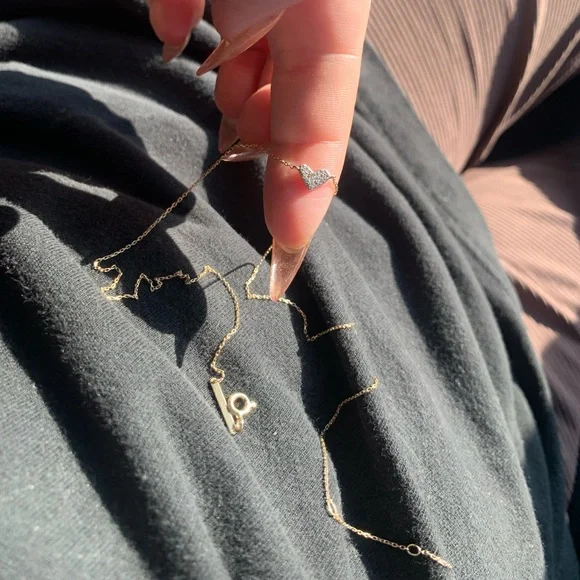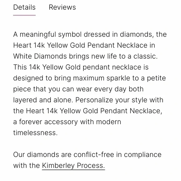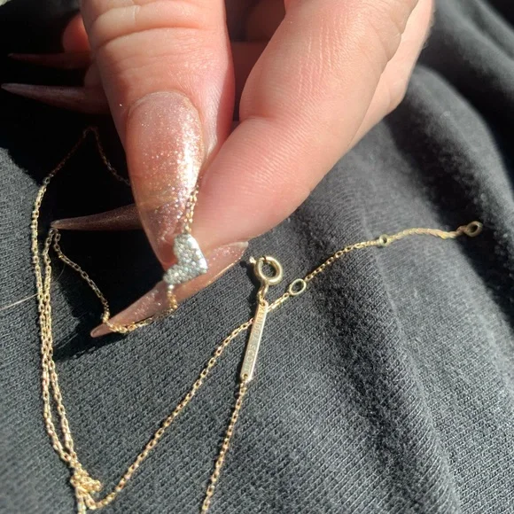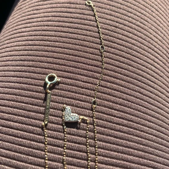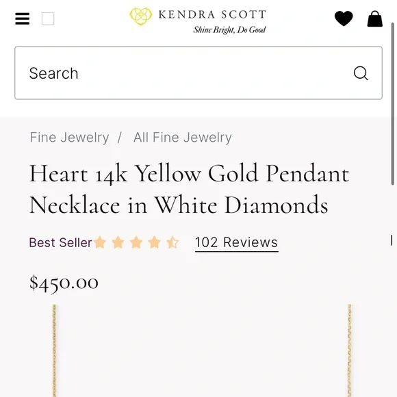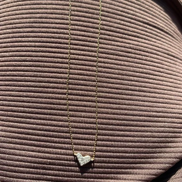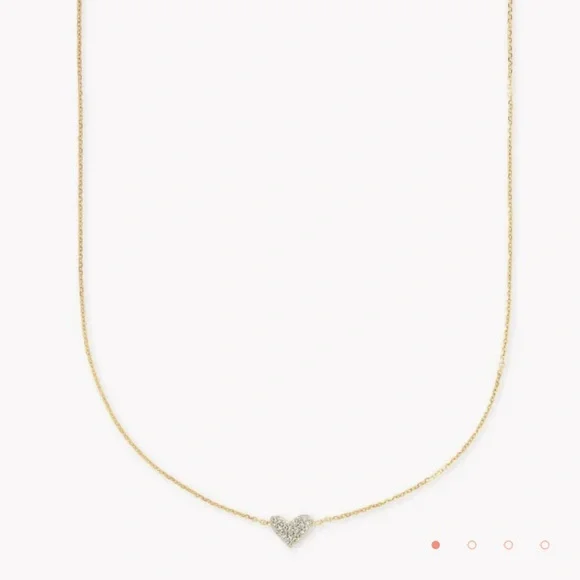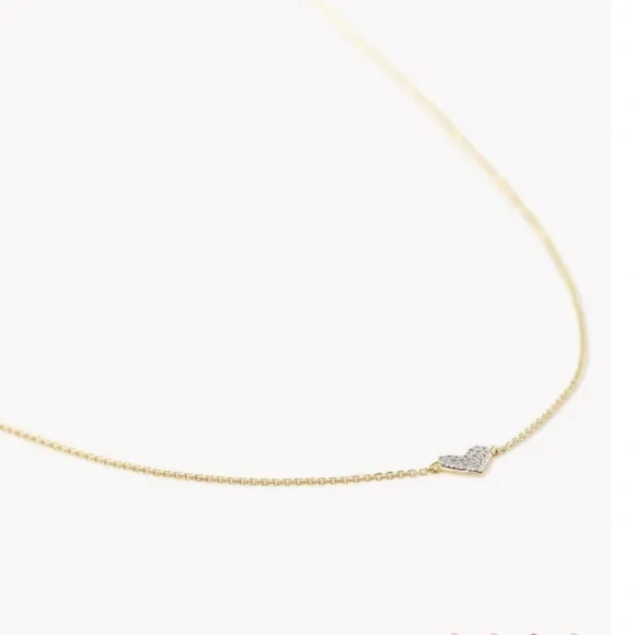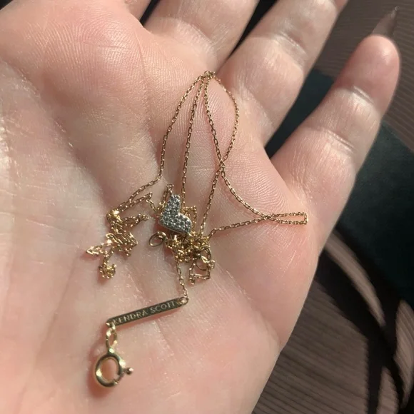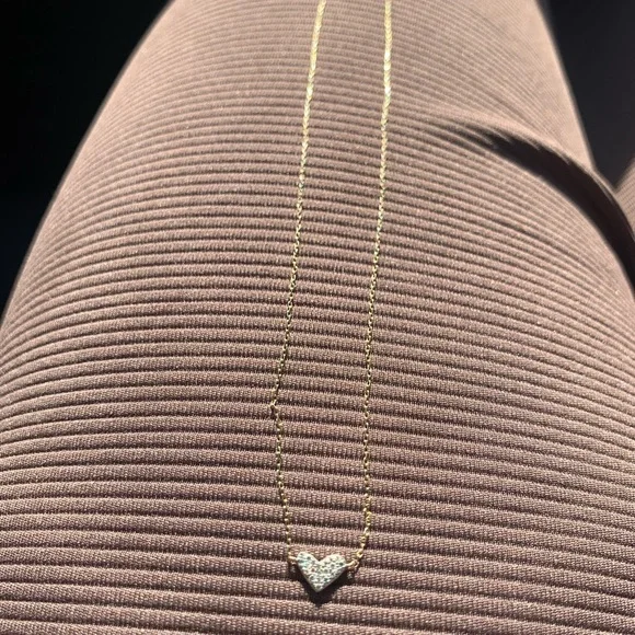 Kendra Scott Heart shaped 14k Yellow Gold Pendant Necklace in White Diamonds. This necklace is designed to bring maximum sparkle to a petite piece that you can wear every day both layered and alone for dressed up or casual. Literally sparkles in the light more than any of my other necklaces. Sad to let it go.
