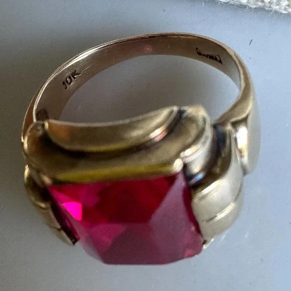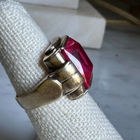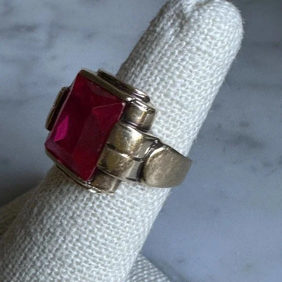 14k Gold Art Deco lab ruby ring- 5.76 grams