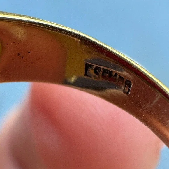 Delightful and very well made Art Deco Ruby 10k yellow gold signet style ring with red stone that tests as ruby but is likely lab created. is bright red under fluorescence. The ruby is loose . The shoulders have art deco design and the ring is stamped 10k and makers markSize 4.5weighs 5.76 grams