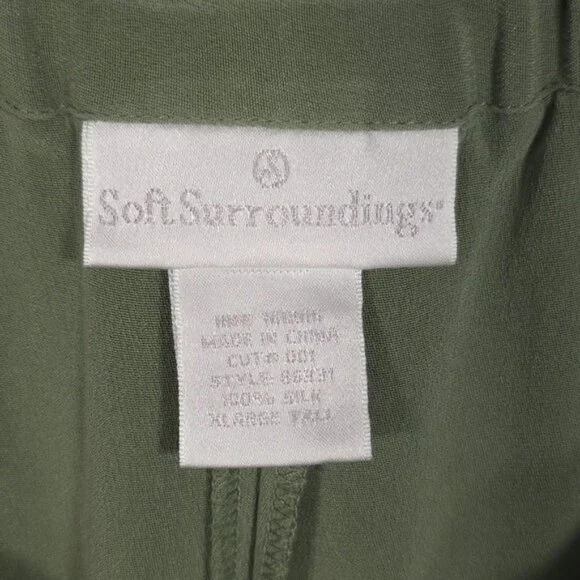 Soft Surroundings 100% SILK Women’s Wide Leg Pants Pull on Pockets Size X-LARGE TALLTWO PIECESPRE-LOVED / SUPER CUTEPLEASE REVIEW ALL PHOTOS AND ZOOM IN TO SEE THE EXACT CONDITION, DETAILS AND MEASUREMENTSFast ShippingWELCOME OFFERS & COUNTEROFFERSItem stored in a smoke-free and pet-free environment.Feel free to send me any questions.IDIOMAS/Languages: Español / EnglishYou can visit my closet/online store, where you can find a wide variety of recognized and prestigious brands, in new and pre-owned conditions. Don’t hesitate to take a look, ask if you have any questions, or make an offer.