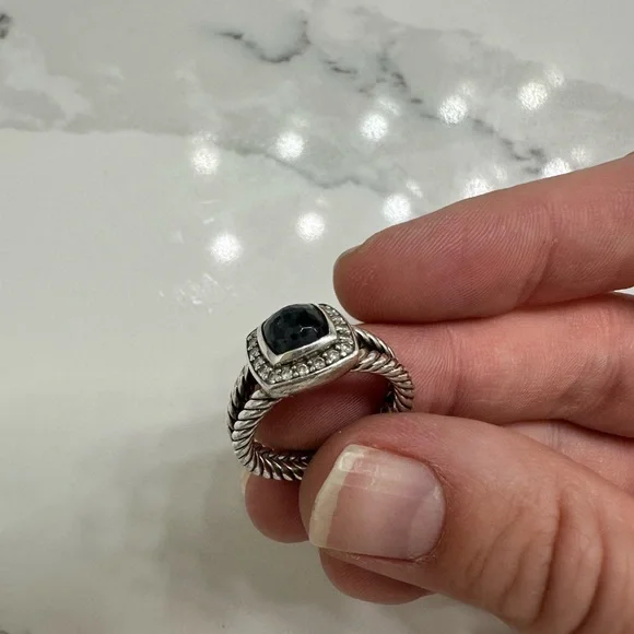 Size 6. Perfect condition. Diamonds are flawless and intact and never replaced! The stone is sold out online and is the deepest blue navy!