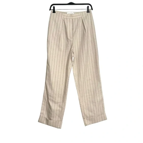 Significant Other Emery Pinstripe Pleat Front Cream Pants US 4