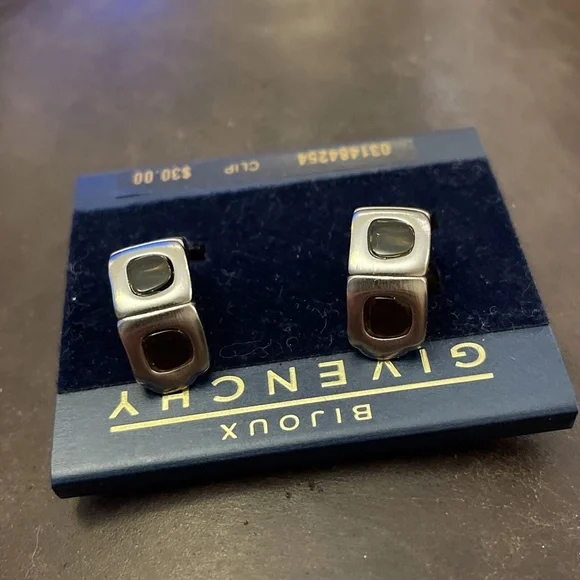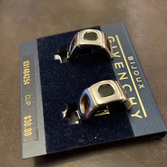 Bijoux Givenchy Black and Silver-plated Clip EarringsSigned, on original card, one ownerNew Vintage StockStored with Care