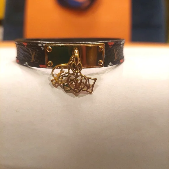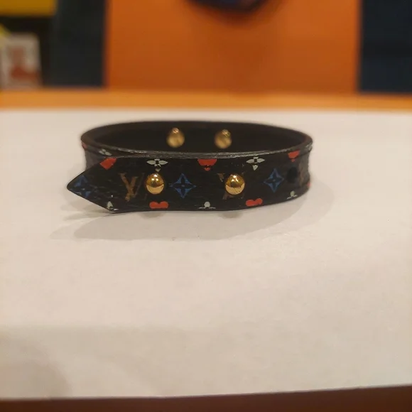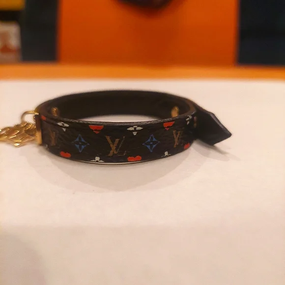 Louis Vuitton Brassiere Game On Bracelet with attached Gold Club, Diamond, Heart, Spade, CharmsPre-Loved, Good Conditon.Code: MP285Size 17Pics with different backgrounds to highlight various features.✨️