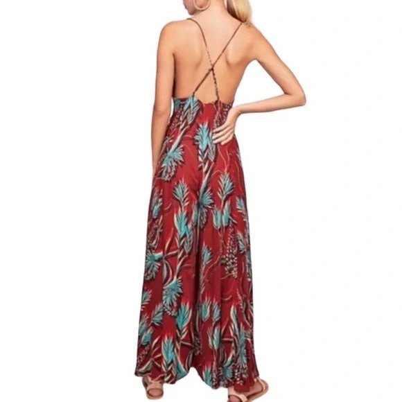 Free People Alissa Jumpsuit Tropical Floral Print Wide Leg Sleeveless Size 10