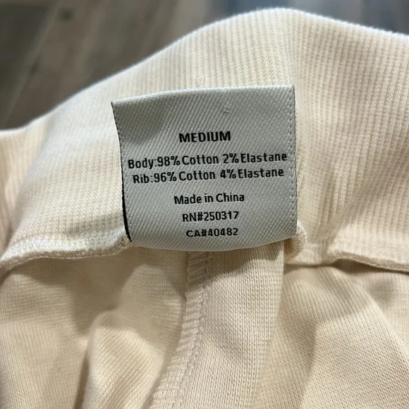 New without tags Size MediumColor OatmealThe Amberley pant has a slim tapered fit through the leg and is cuffed at the ankle. Made of structured and textured ribbed pique fabric, this style features a deep elastic waistband with internal drawstring, front pleats, pockets, and ribbed details at the waist and cuffs.Fabric: 98% Cotton, 2% ElastaneBin 10