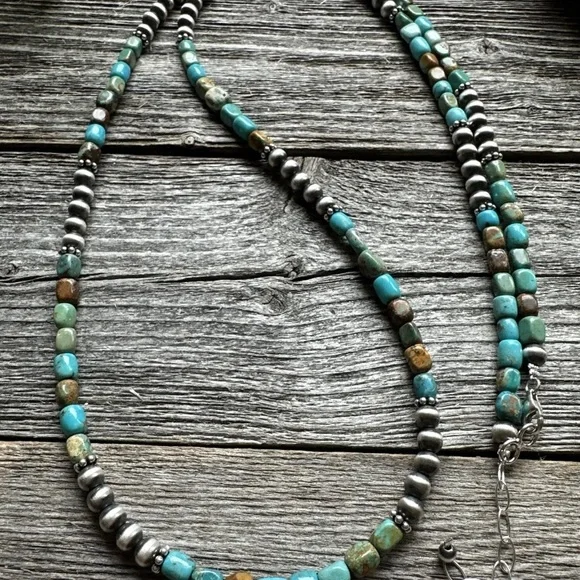 Sterling Silver Blue Green Turquoise W Pearls Bead Necklace. 36 inchBest Offers Accepted!