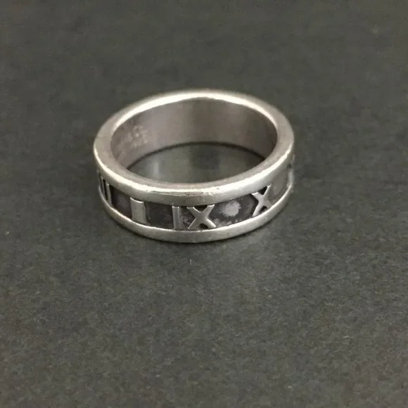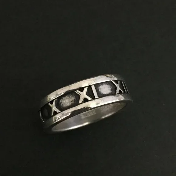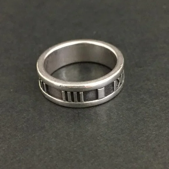 TIFFANY&CO. Atlas 1995 Roman Number SV 925 Ring ISO sz:53