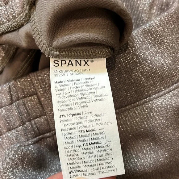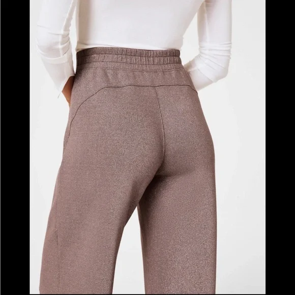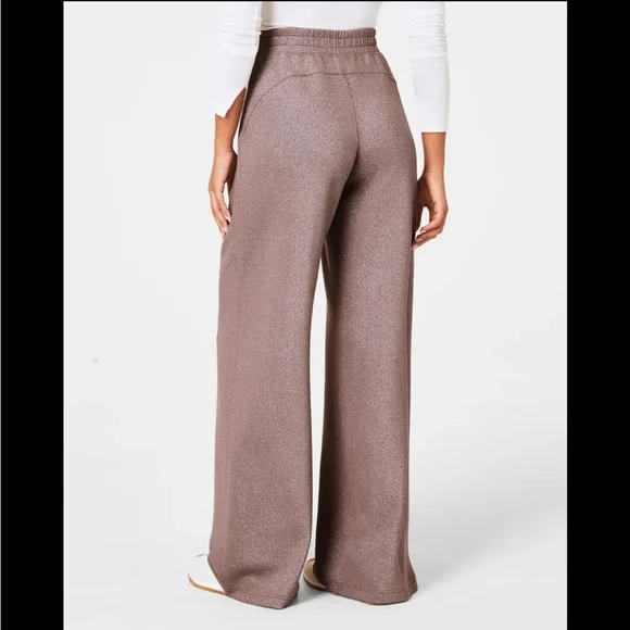 New without tagsSize MediumColor Smoke SilverSpanx´s AirEssentials wide leg pants are made with super-soft spacer fabric that´s lightweight, breathable, and feels silky smooth against your skin. Made with Lurex®, these versatile mid-rise pants feature a metallic shimmer that can take you anywhere and everywhere. Designed for both style and functionality, these are the ultimate throw-on-and-go style–perfect for travel, too.Wide Leg Style: Full length lounge pant with a 20" approximate wide leg openingRelaxed and Refined: Comfortable but put-together, this non-shaping pant features a contoured back for a flattering rear viewMid-Rise Waist: Sits comfortably at the natural waistline for a flattering fitBin 25