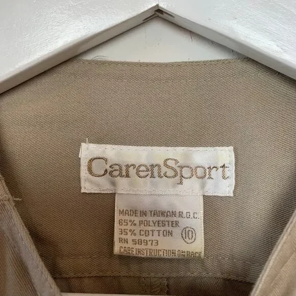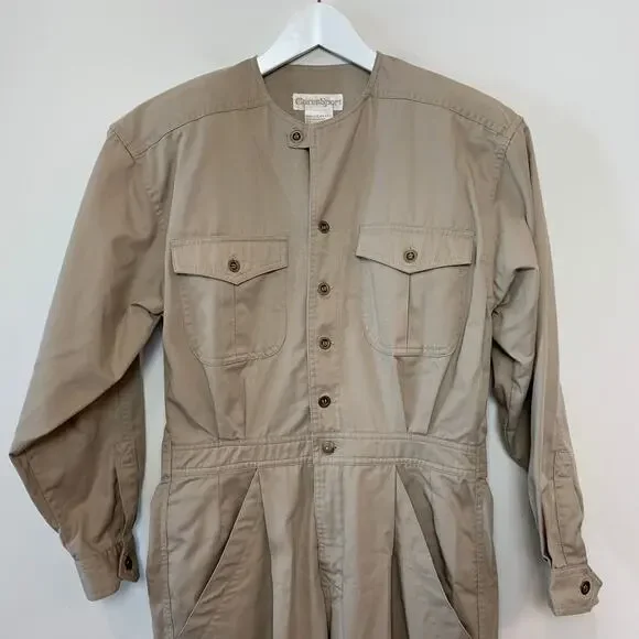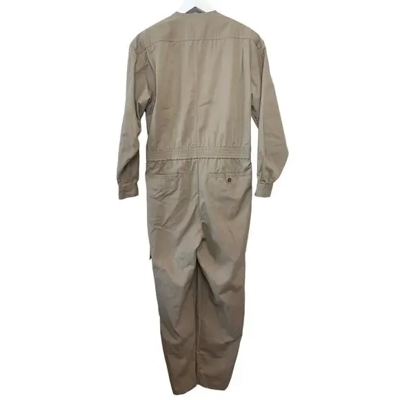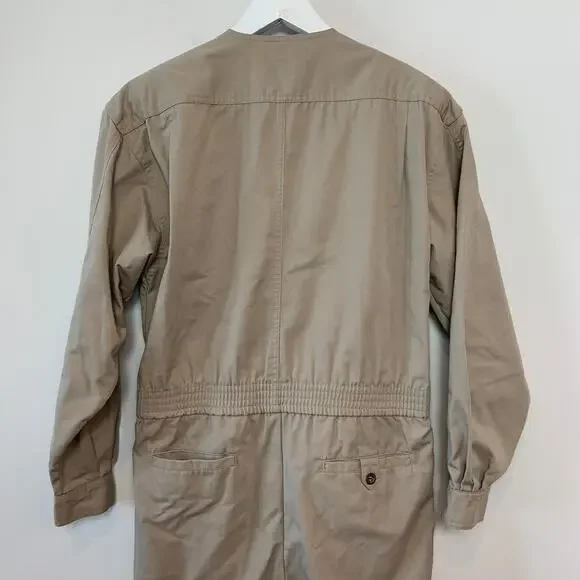 Vintage 80s Caren Sport Coveralls Jumpsuit khaki Tan Long Sleeve Button Down 10