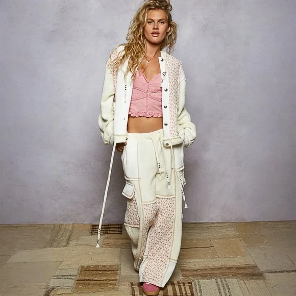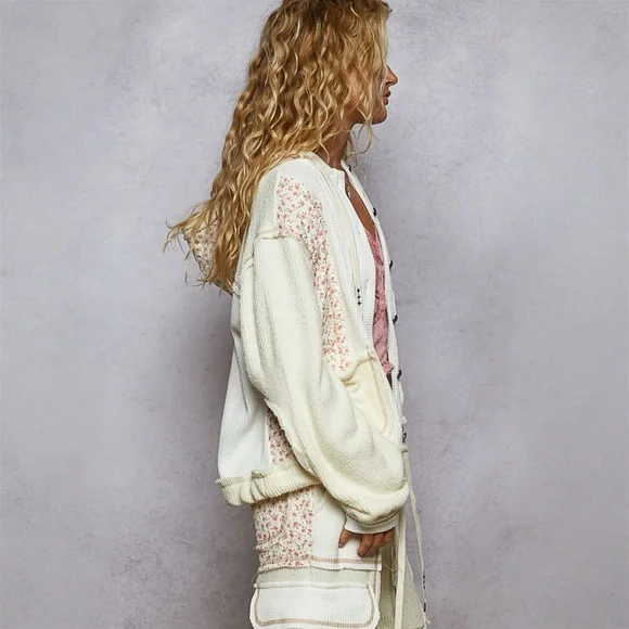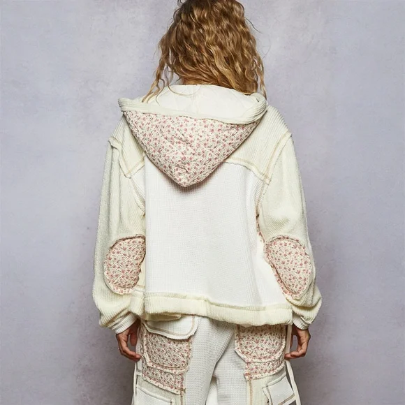 POL Cream Floral Print Color Block Reverse Stitch Button Down Jacket S M L, ships in 7-8 days